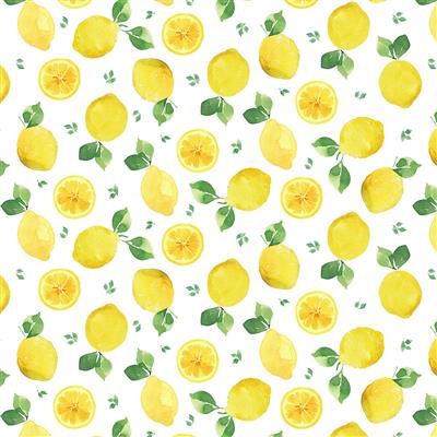 Y4735-1, Clothworks, Designed by Heatherlee Chan, For Lemon Zest Collection, Digital Tossed Lemons White