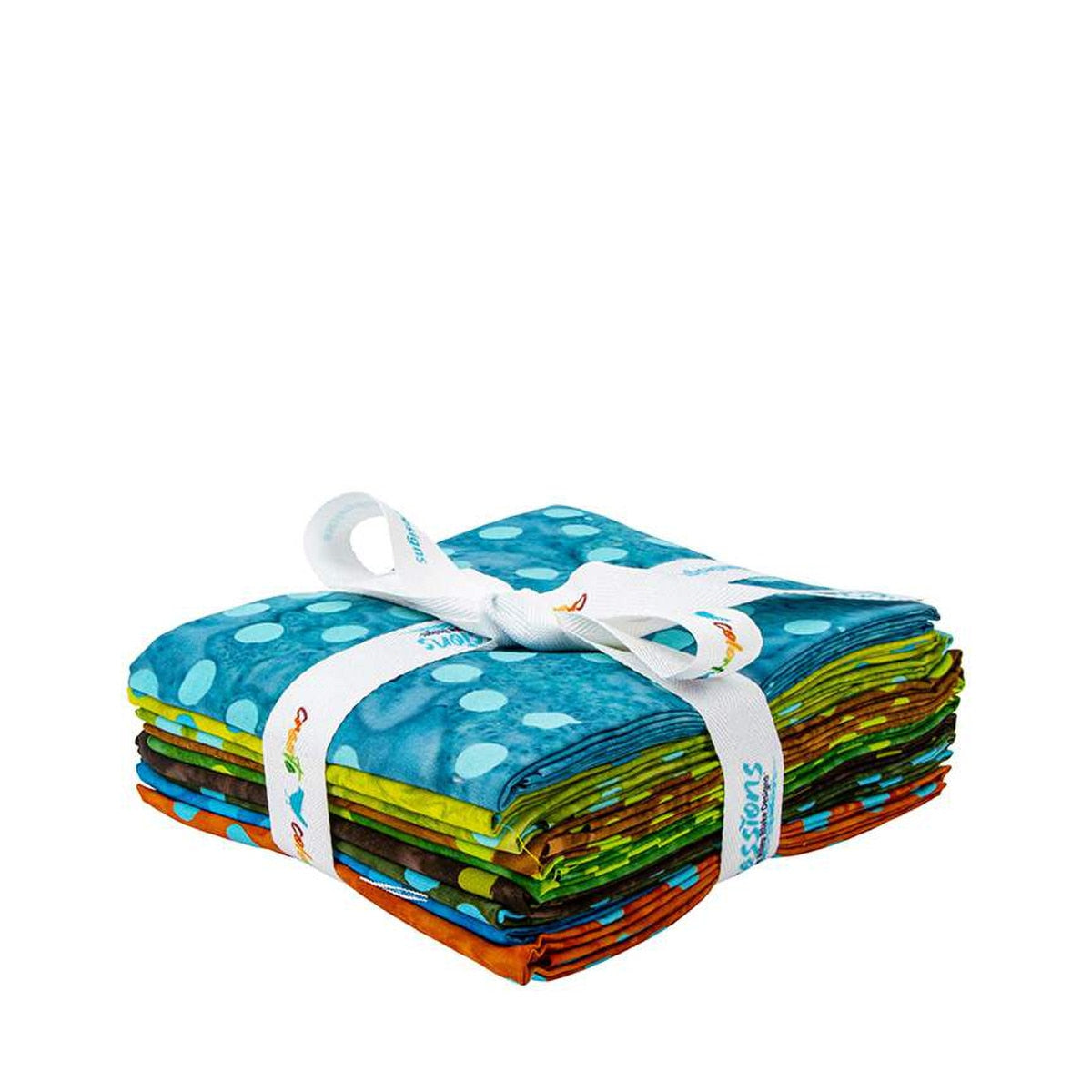 FQ-21401A-9, Riley Blake Designs, The Expressions Batiks Elementals Designed by the RBD for Polka Pop, Warm Fat Quarter Bundle, Green Blue