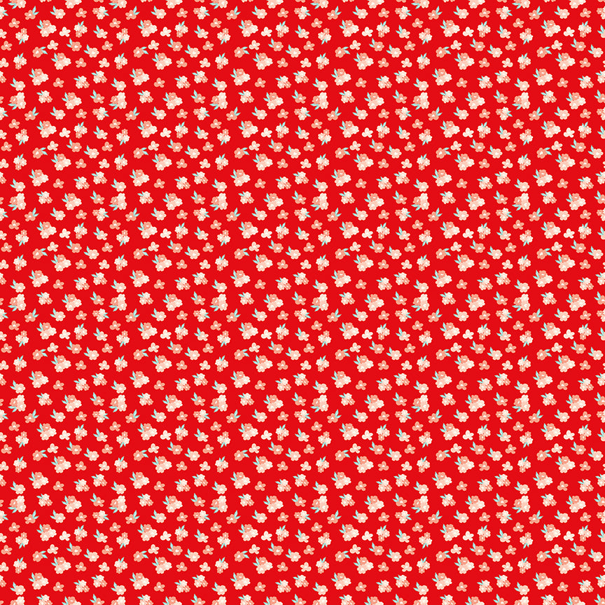 You & Me by Sandy Gervais for Riley Blake Designs is great for quilting, apparel and home décor. 100% cotton. Machine Wash Cold/Tumble Dry Low. This allover print features small blossoms. Red.