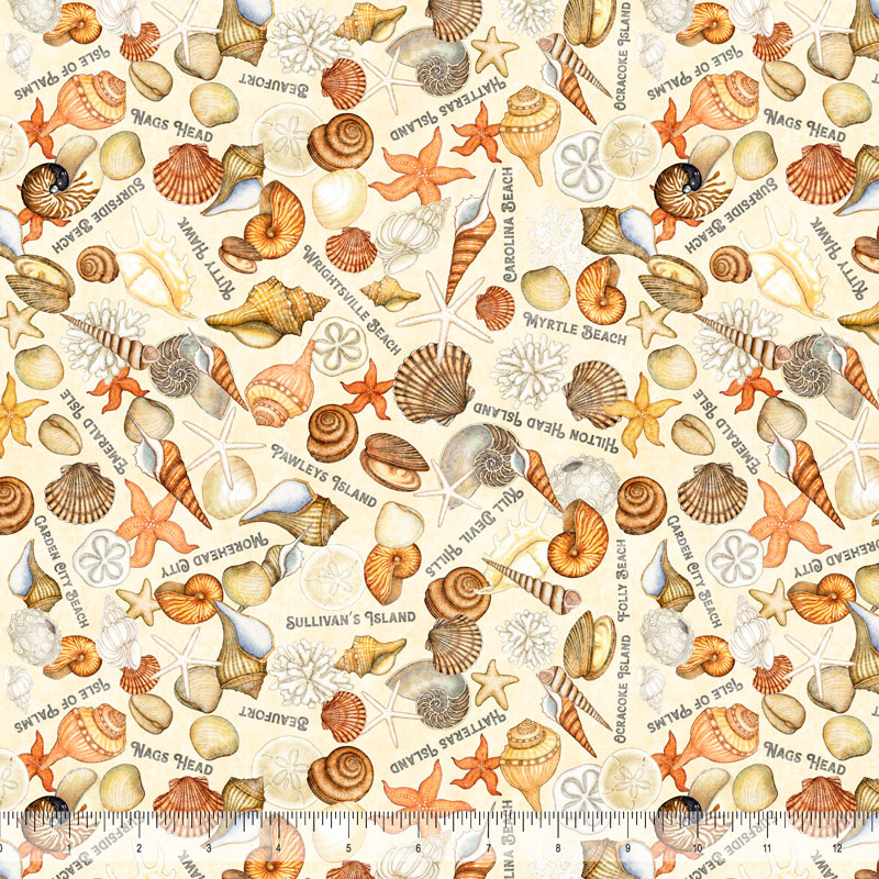 2600 31365 E 150, QT Fabrics, For All Carolina Shop Hop, Seashells Cream