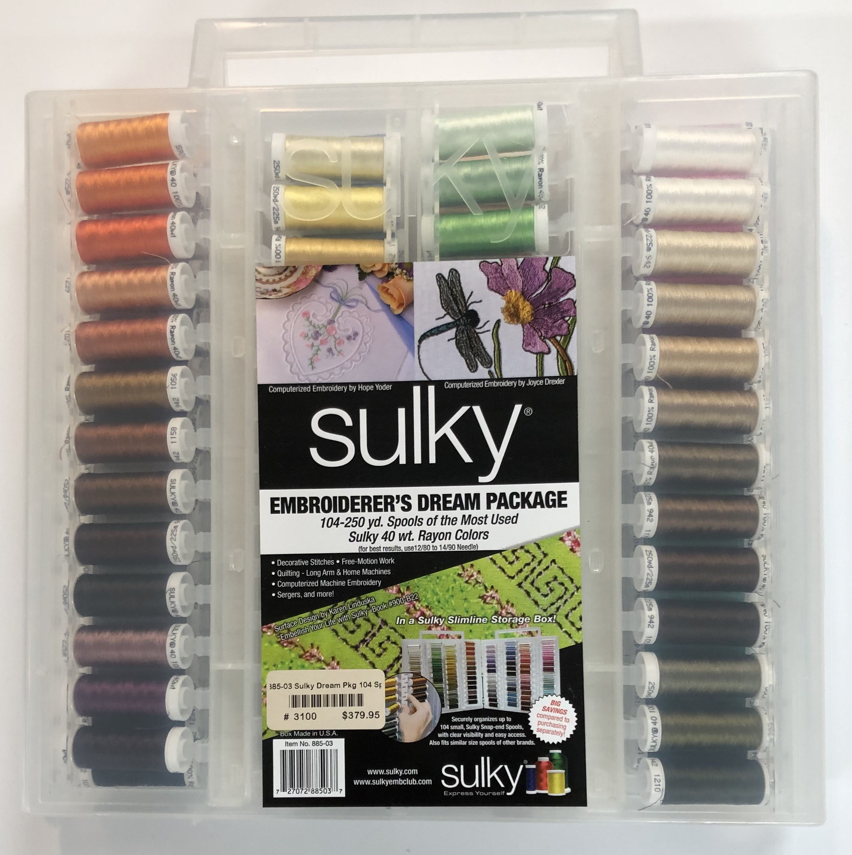 Babylock - SULKY EMBROIDERERS DREAM PKG WITH SLIM LINE BOX - 104 COLORS - 885-03 250 yard spools 40 wt. Rayon