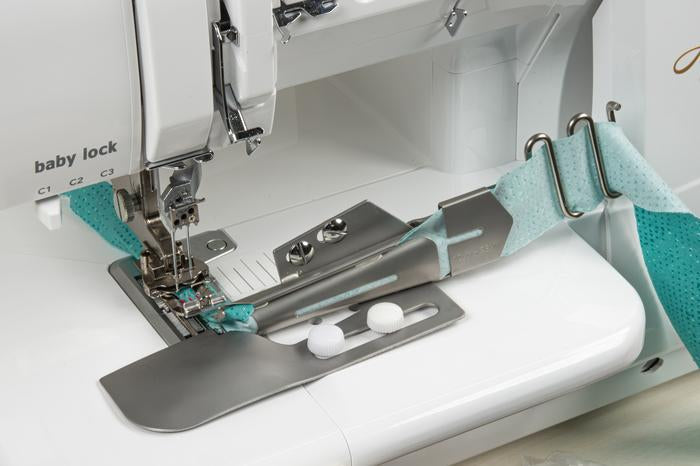 Create the ideal edge for any project when using this attachment. The top side of the fabric strip is folded under while the fabric edge on the back remains flat for a smooth finish. When using this attachment, a clean and professional look is created that is perfect for necklines, along the top edge of a pocket, or any edge where bulk is not desired. Fits Models: BLES8, BLETS8AE, BLETS8, BLCS, BLCS2, BLC4, BLP6