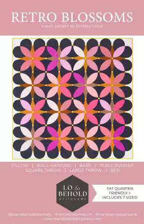 Retro Blossoms is a modern take on pieced curves with a nod to the past. This vintage floral inspired quilt has a mix and match-style color palette and three different kinds of traditionally pieced curves.Pattern includes three pages of templates (6 templates total).